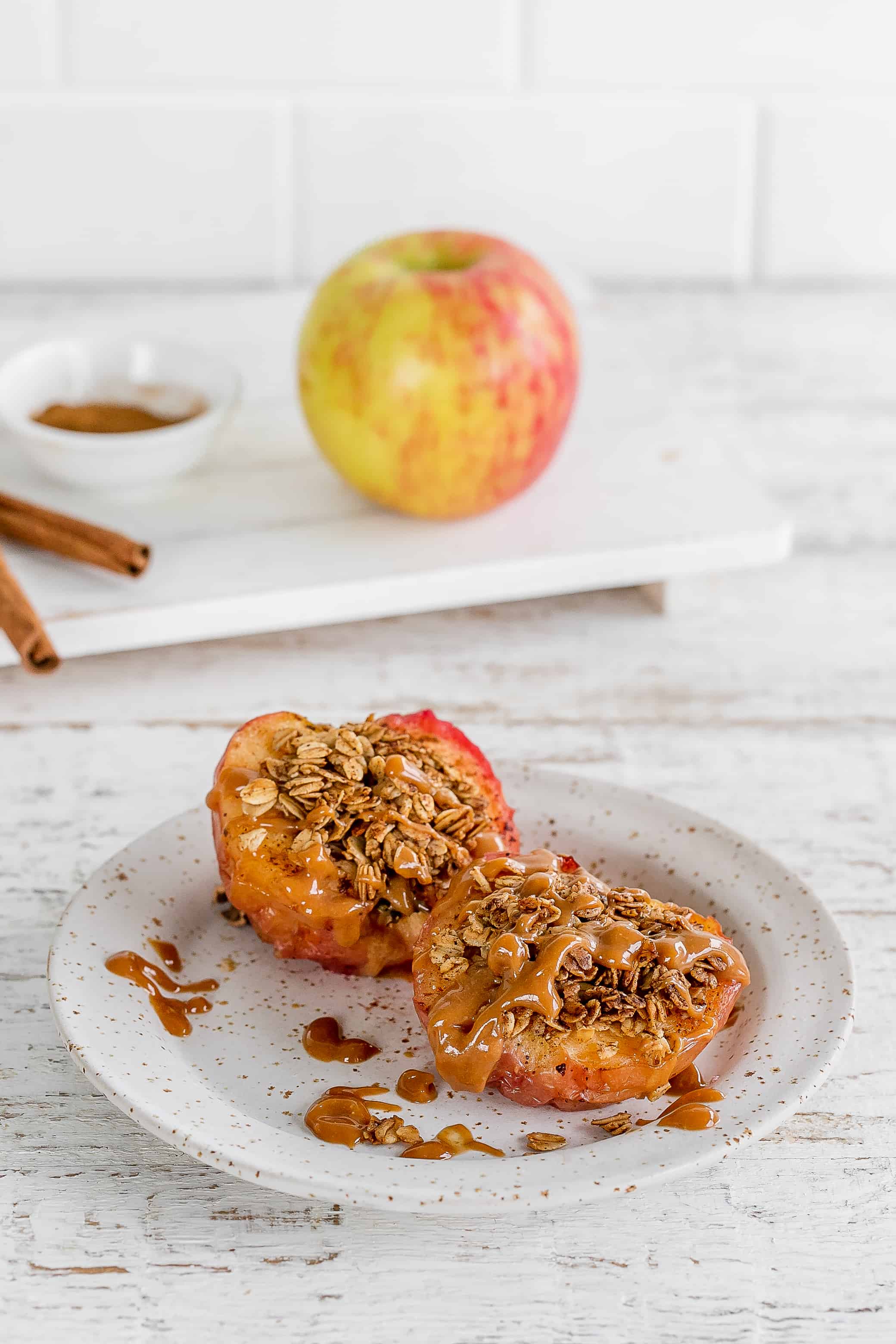 Craving a simple dessert and don’t want to go through the hassle of making a whole apple crisp? Try this air fryer single serve apple crisp. Top with cinnamon spiced oats and a drizzle of almond butter after.