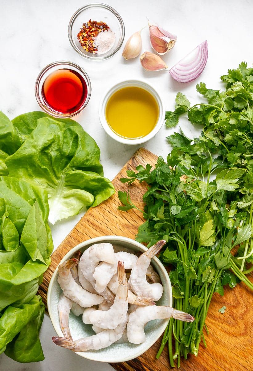 Chimichurri is a delicious Argentinian parsley and cilantro sauce that is fresh, zesty and pairs well with grilled meat or fish. This recipe uses shrimp which makes for a quick and easy meal to prep for your next barbecue. The Boston lettuce offers a light vehicle for the saucy grilled shrimp making this the perfect main or appetizer for a hot summer night.