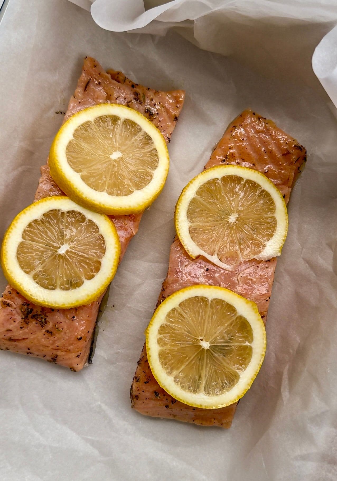 A quick and easy, zesty salmon recipe that anyone can make! Salmon provides abundant protein and b vitamins, is loaded with selenium (a powerful antioxidant) and of course, is an excellent source of EPA and DHA. These are the good fats we want in our diets, as they can help benefit our brain and heart, as well as improve circulation and assist in lung health.