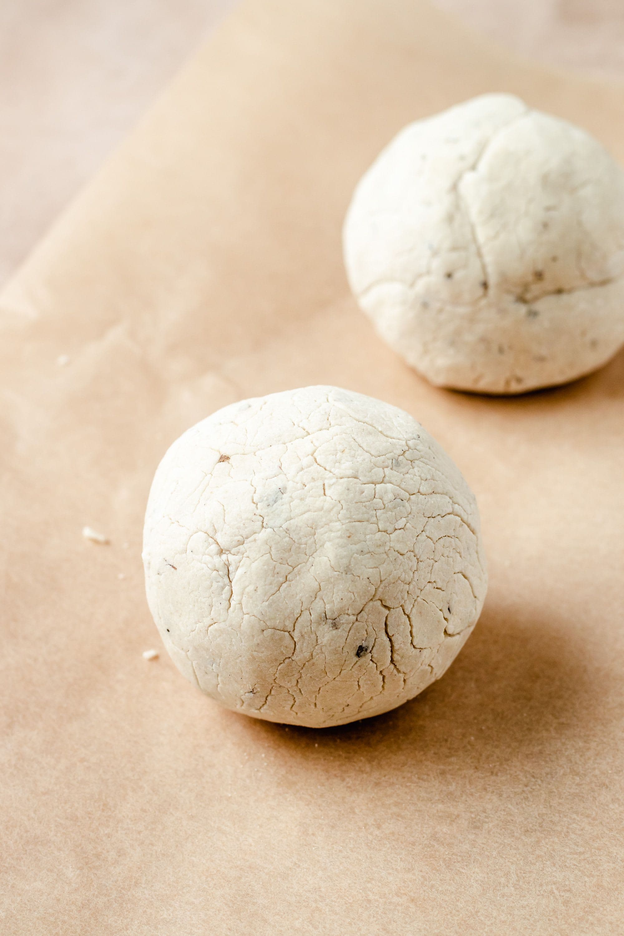 Divide the pizza dough into four equal pieces then shape each into a ball. Shape each ball into a crust, as thin as you can, then place on the parchment paper (you can also do this directly onto the pan, depending on the type of crust you use).