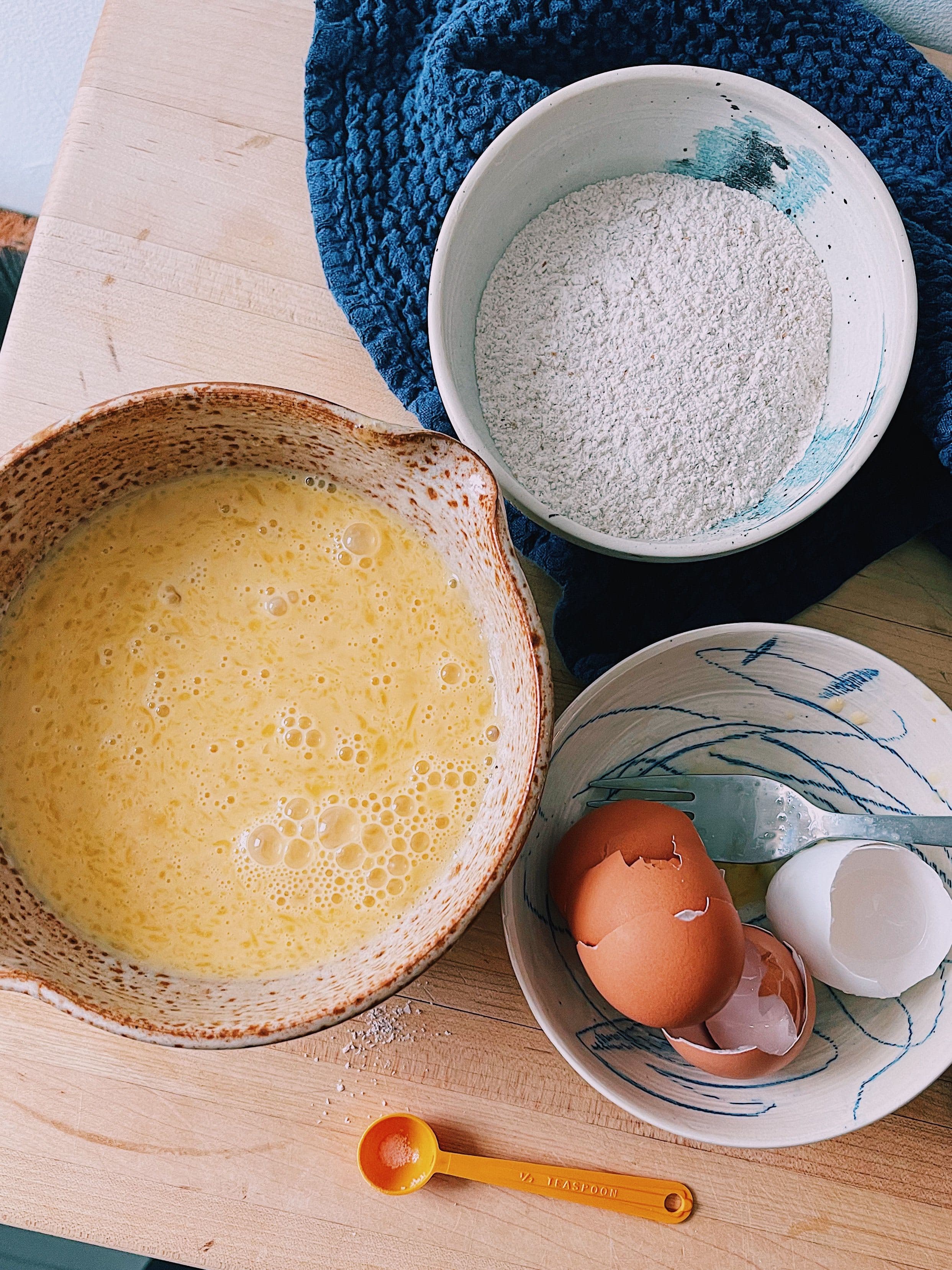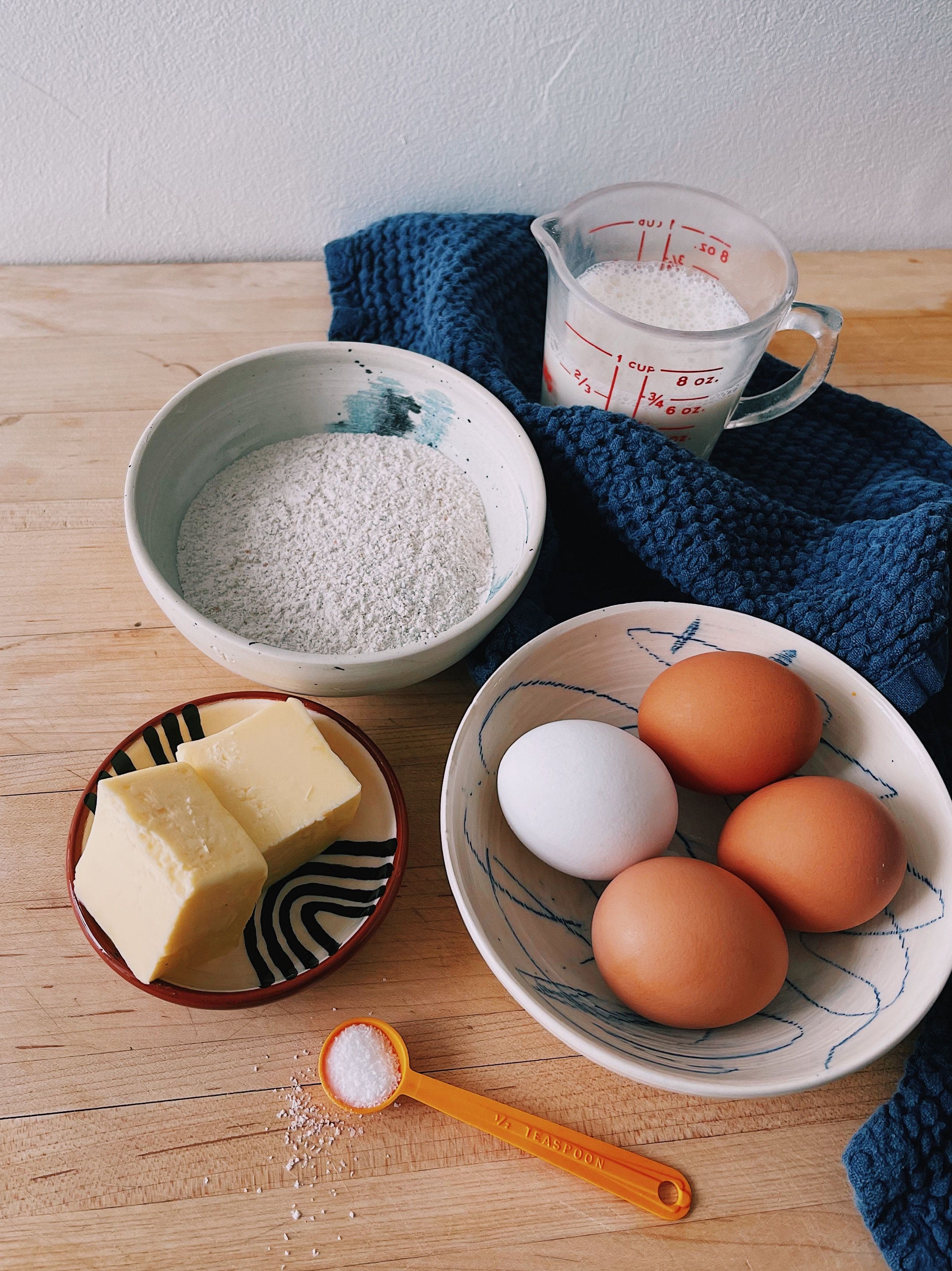 Combine the eggs, milk, flour, vanilla, salt, and melted butter from the skillet. Blend in a blender until just combined (30 seconds to 1 minute) and try not to over mix (this will decrease the height) Make sure no large clumps of flour remain.