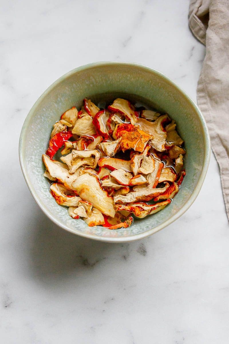 If you use dried mushrooms, reconstitute them according to package directions, and remove any grit left behind.
