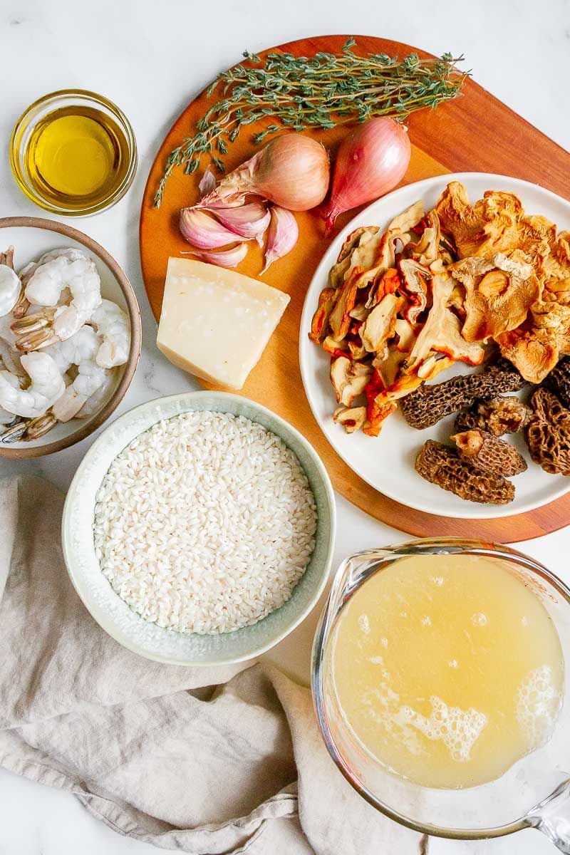 Notes: Add butter and/or heavy cream to enhance the creaminess of the risotto. Dried wild mushrooms can be found at farmers markets or speciality grocery stores. They can be reconstituted with water. Use the water from reconstituting the mushrooms as part of the broth to enhance the mushroom flavour.